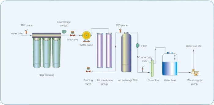 - Key Material Assurance: High-quality reverse osmosis membranes, high-performance EDI modules, low-leaching ion exchange resins, and high-transparency quartz UV lamps are used.